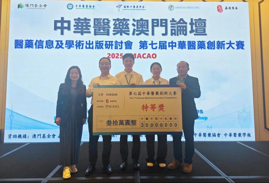 10月27日,第七届中华医药创新大赛在澳门成功举办。西安交通大学药学院由院长王嗣岑教授带队,景王慧教授、王珂教授以及博士研究生绳康佳、白浩云、单毅与来自全国的优秀团队同场竞技。本次大赛作为“2025中华医药澳门论坛”的重要组成部分,由中华医药协会、国际中医药学会联合主办,澳门基金会及嘉道资本资助,旨在推动中医药产学研深度融合与创新转化。西安交通大学药学院在此次大赛中表现卓越,荣获特等奖、二等奖及功能智品奖,充分展现了学院在中医药创新领域的实力与影响力。