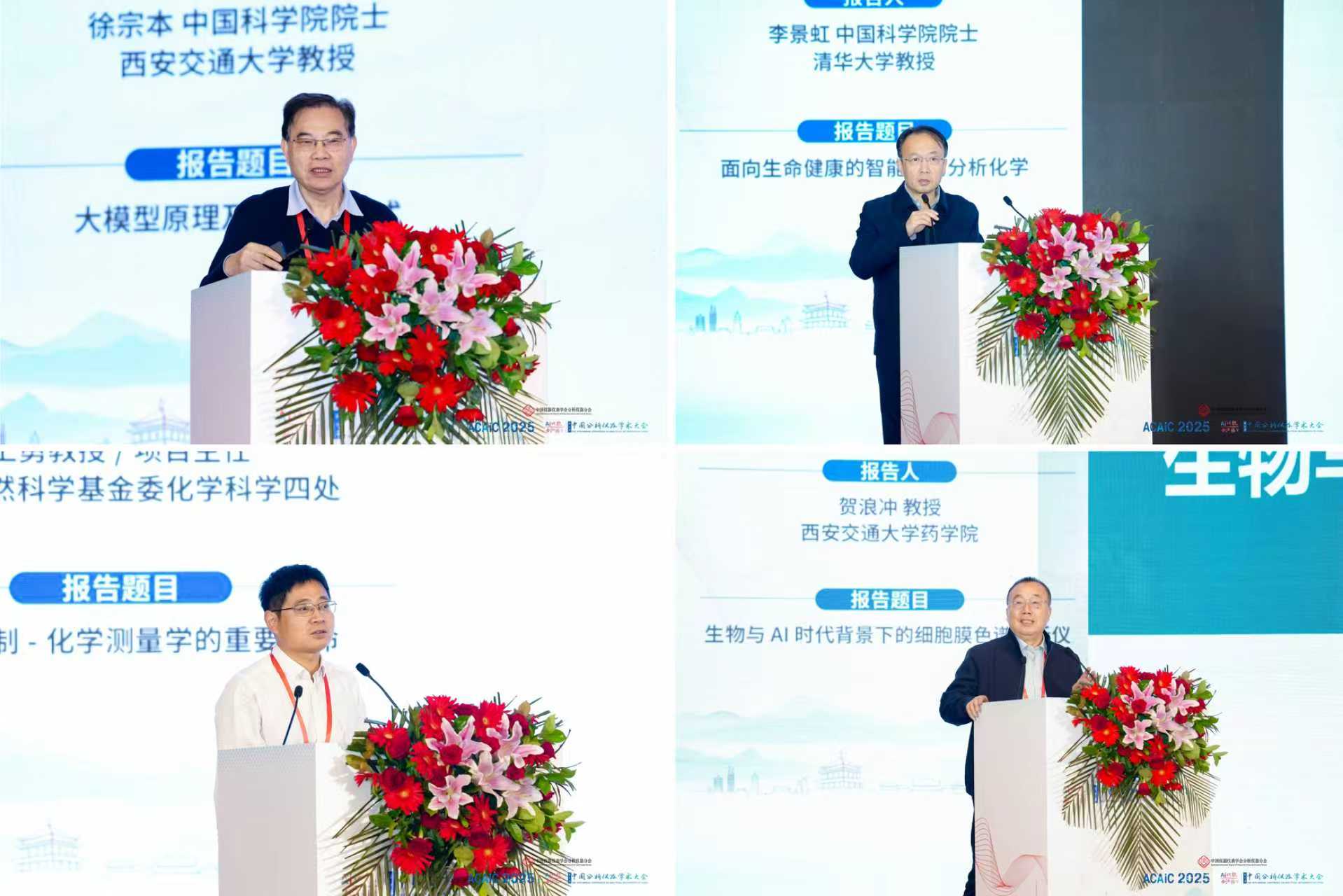 开幕式后精彩的大会报告环节,中国科学院院士、我校徐宗本教授,中国科学院院士、清华大学李景虹院士,国家自然科学基金委化学科学四处王勇主任,我校药学院贺浪冲教授分别做大会报告,聚集“AI赋能创新转型”,深入探讨AI对分析仪器性能提升、功能拓展、应用开发、研发流程及创新管理等带来的影响,一同展望新技术、新产品、新应用、新范式以及新格局。