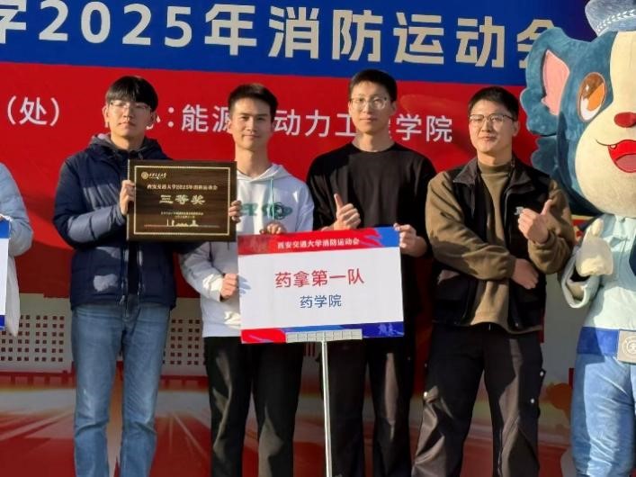药学院由辅导员杨亚萍带队,硕士研究生冯子涵、任行、佘文婷、王晨艳、崔淑菲、杨凤、李如意、杨鑫、王皓、李淑敏、刘昱彤组成“药拿第一队”积极参赛,本次消防运动会全校共有32支队伍同场竞技,药学院“药拿第一队凭借出色的团队协作与稳定的现场发挥,在激烈角逐中脱颖而出,荣获全校总成绩第六名的好成绩,获得三等奖的表彰奖励。