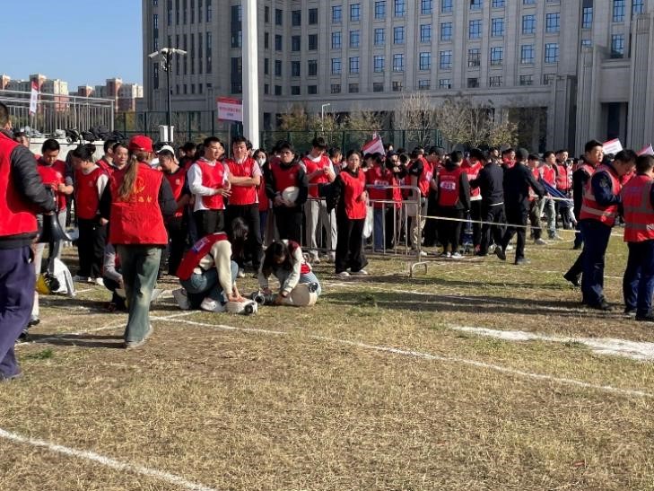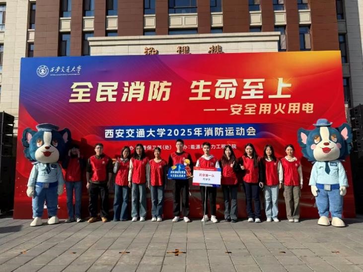 在第三十五届“119”消防宣传月浓厚氛围中,西安交通大学2025年消防运动会于近期在创新港校区涵英楼北运动场隆重举行,旨在通过实战演练增强师生消防安全意识,提升应急自救与团队协作能力,营造“人人讲安全、个个会应急”的校园安全环境。