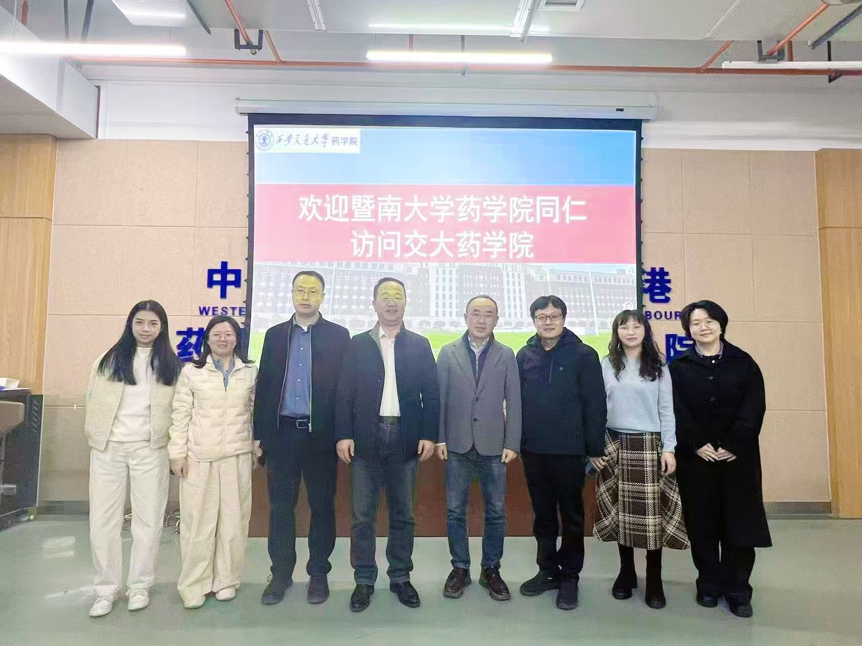 2025年12月8日,暨南大学药学院副院长江正瑾、研究生管理办公室主任刘优等一行4人访问交大药学院。药学院院长王嗣岑、书记张彦民、副院长张杰等参加交流座谈。