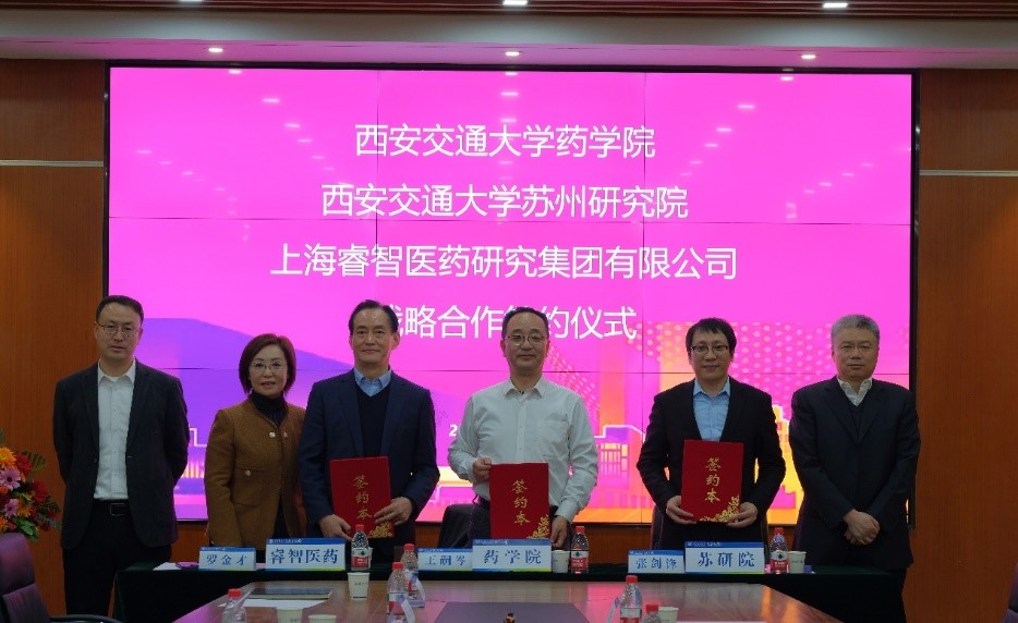 2025年12月9日,西安交通大学药学院与睿智医药、西安交通大学苏州研究院达成战略合作,携手构建产学研融合创新生态战略合作,签约仪式在创新港校区举行。三方代表共同出席签约仪式,标志着校企深度融合迈出实质性步伐,将为医药健康领域科技创新与产业转化注入新动能。