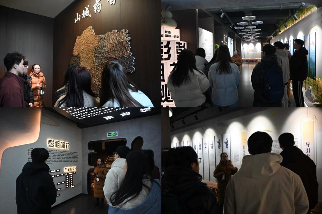 彭祖书院是彭祖文化的重要载体。基于此,实践团队开启彭祖非遗养生文化研学交流之旅,深入参观彭祖书院。这座集经典研习、品行养正、传统体验等功能于一体的文化综合体,蕴藏着深厚的彭祖康养文化底蕴。在专业讲解员带领下,成员们沿着历史脉络,了解中医药文化发展历程,探寻彭祖的生平事迹,梳理彭祖康养文化的起源、发展与传承脉络,挖掘彭祖康养理念在现代康养产业中的应用路径,为打造特色文化IP、讲好中医药故事积累丰富素材。